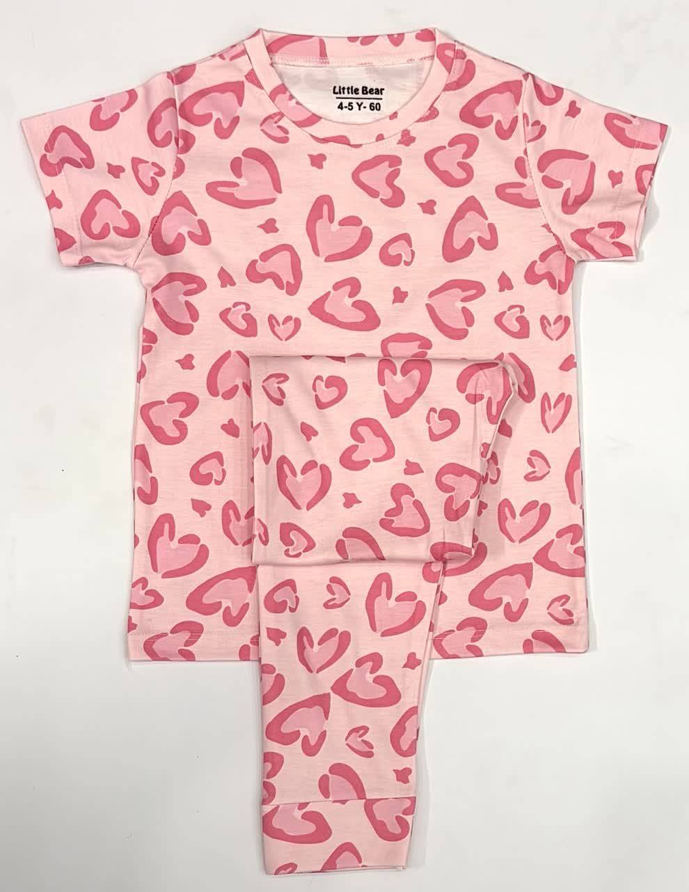 ناموجودست تیشرت و شلوار راحتی دخترانه صورتی رنگ طرح قلبی | سایز 3 تا 8 سال