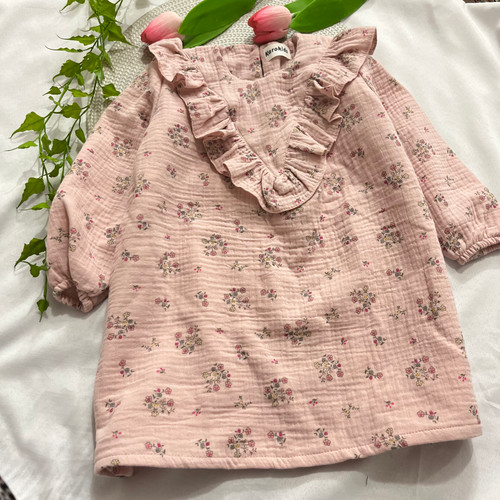 پیراهن دخترانه جنس موسلین همراه با لایی سایز ۲ تا ۷ سال