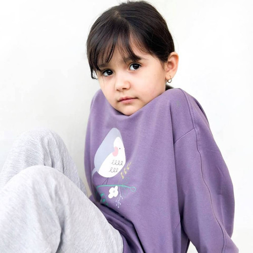 ست بلوز و شلوار دخترانه طرح گنجشک دورس دو نخ لاکرا | سایز 1 الی 8 سال