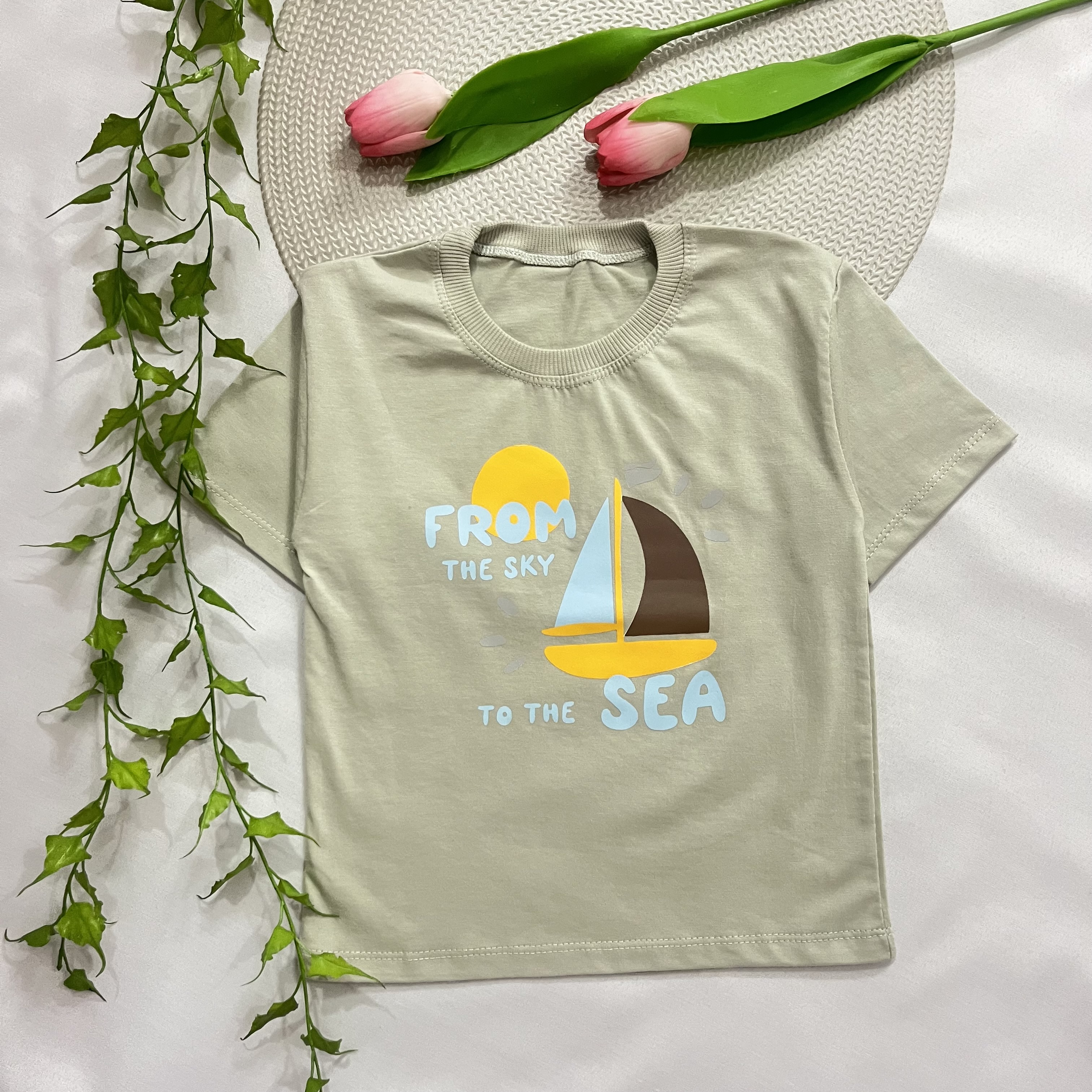 تیشرت تک دخترانه جنس نخ پنبه طرح قایق / سایز 40 تا 55
