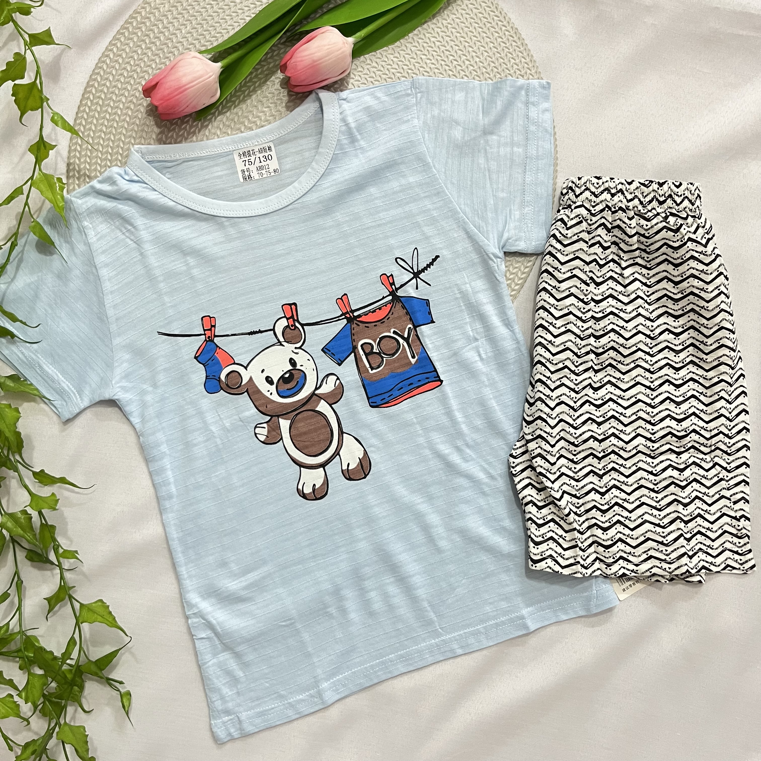 ست تیشرت و شلوارک پسرانه وارداتی طرح خرسی جنس نخ پنبه | سایز ۳ تا ۸ سال