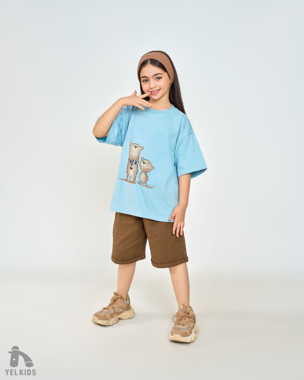 ست تیشرت شلوارک اسپرت بچگانه طرح خرسی جنس نخ پنبه /سایز ۳۵ تا ۴۵