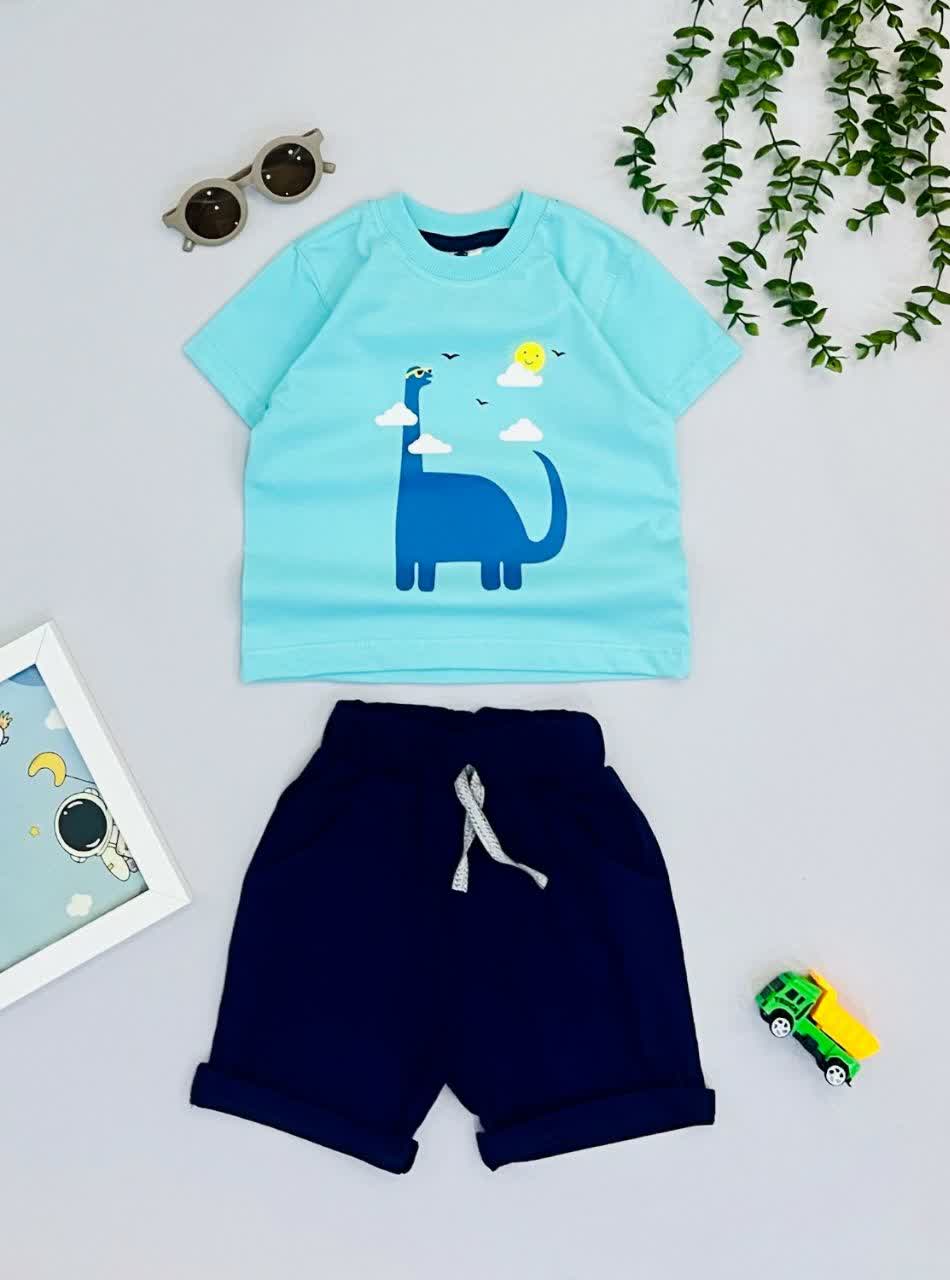 ست تیشرت و شلوارک اسپرت بچگانه طرح دایناسور | سایز ۳۵ تا ۴۵