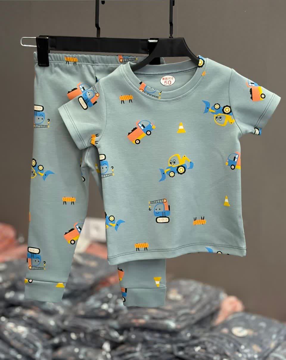 ست بلوز و شلوار پسرانه طرح حیوانات جنس دورس دو نخ لاکرا | سایز 45 تا 50