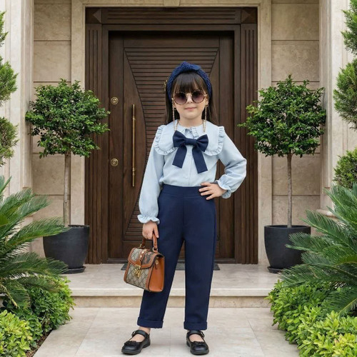 ست شومیز و شلوار مجلسی دخترانه رنگ سرمه ای /سایز ۴۰ تا ۵۵