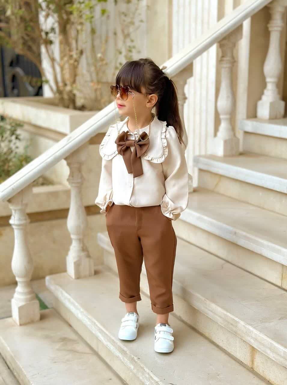 ناموجودست شومیز و شلوار پاپیون دخترانه سایز ۳ تا ۱۰ سال