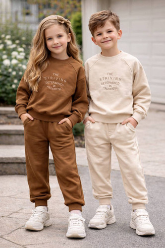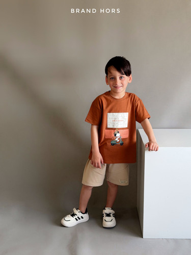 ست بیسکویتی تیشرت و شلوارک بچگانه رنگ کرم و شکلاتی | سایز ۳ تا ۱۱ سال