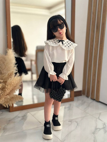 ست شومیز آستین بلند و دامن دخترانه بهاره | سایز ۳ تا 10 سال