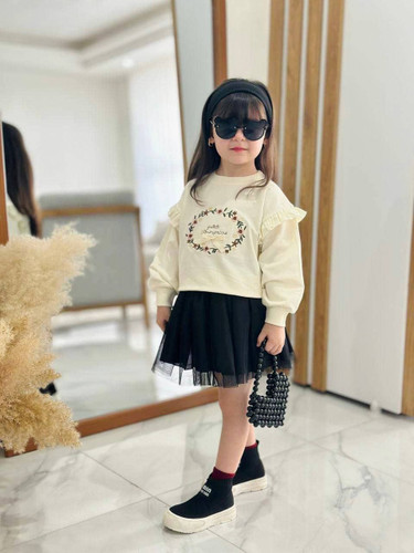 بلوز دورس دخترانه گلدوزی بیوتیک دخترانه رنگ شیری | سایز ۳ تا 10 سال