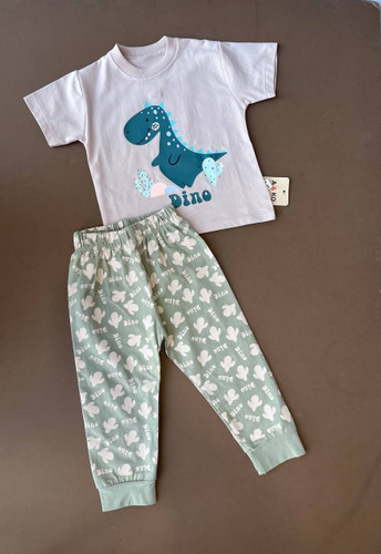 ست راحتی تیشرت و شلوار دخترانه طرح دایناسور جنس نخ پنبه | سایز ۱ تا ۴ سال