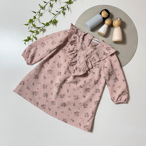 پیراهن دخترانه جنس موسلین همراه با لایی سایز ۲ تا ۷ سال