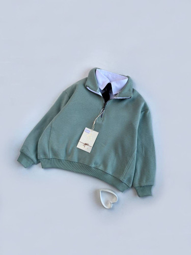 بلوز یقه نیم زیپ پسرانه بهاره جنس سلانیک رنگ سبز پاستلی و مشکی | سایز 40 تا 65