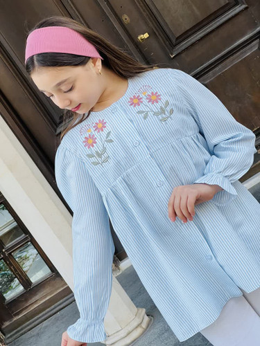تونیک تک دورس دخترانه گلدوزی شده جنس دورس لاکرا | سایز 3 تا 8 سال