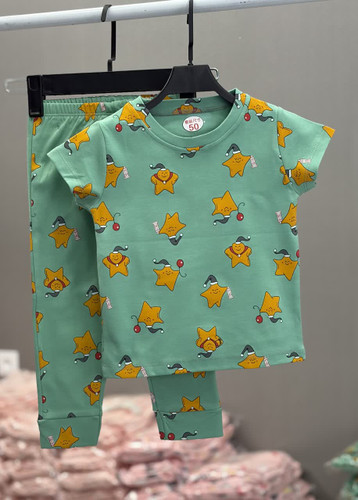 ست تیشرت و شلوار راحتی بچگانه رنگ سبز طرح ستاره وارداتی | سایز ۲ تا ۸ سال