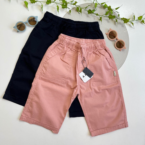 شلوارک کتان بچگانه رنگ صورتی و سرمه ای برند آکو / سایز ۷ تا ۱۰ سال