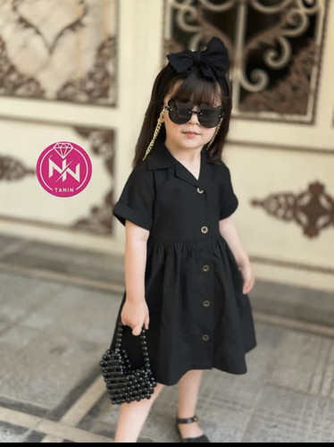 پیراهن لینن دخترانه رنگ مشکی سایز ۲ تا ۶ سال