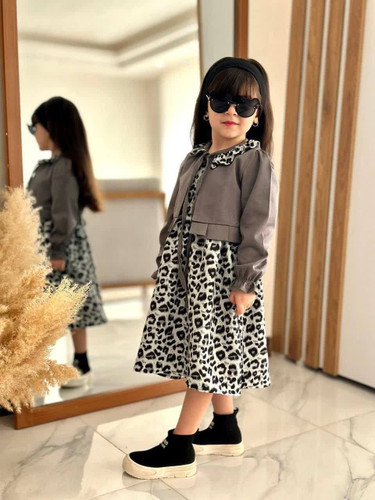 ست کت و سارافون دخترانه بهاره طرح پلنگی /سایز ۲ تا ۱۳ سال
