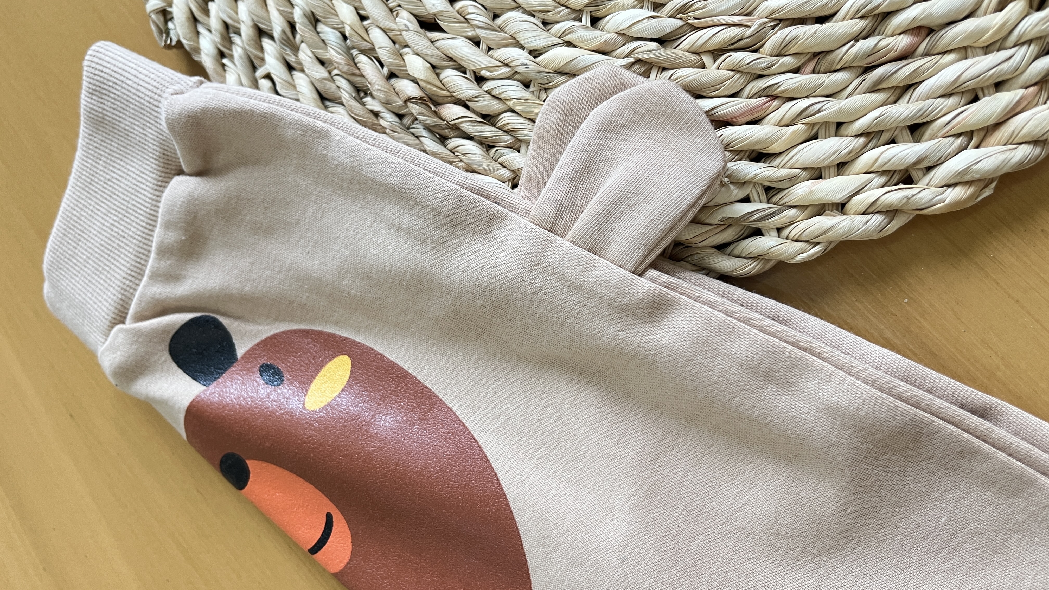 شلوار گوش دار نقلی پسرانه طرح خرسی رنگ کرم جنس پنبه | مناسب 6 ماه تا 24 ماه