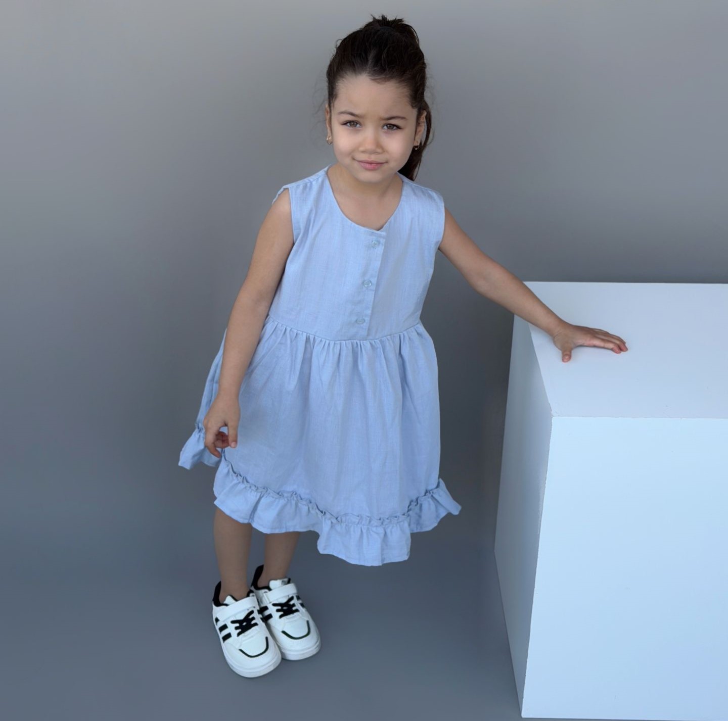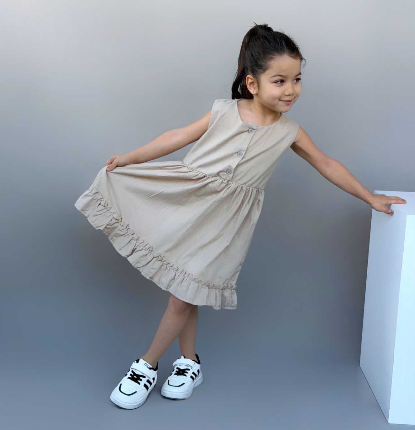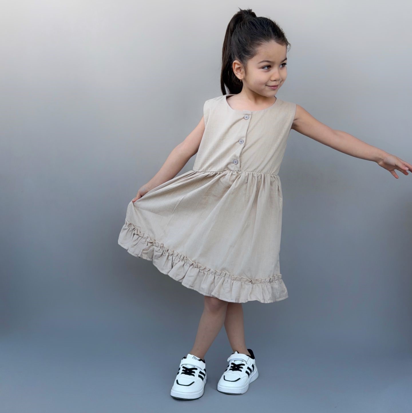 پیراهن دخترانه طرح فلورا جنس کتان نخ | سایز 3 الی 8 سال