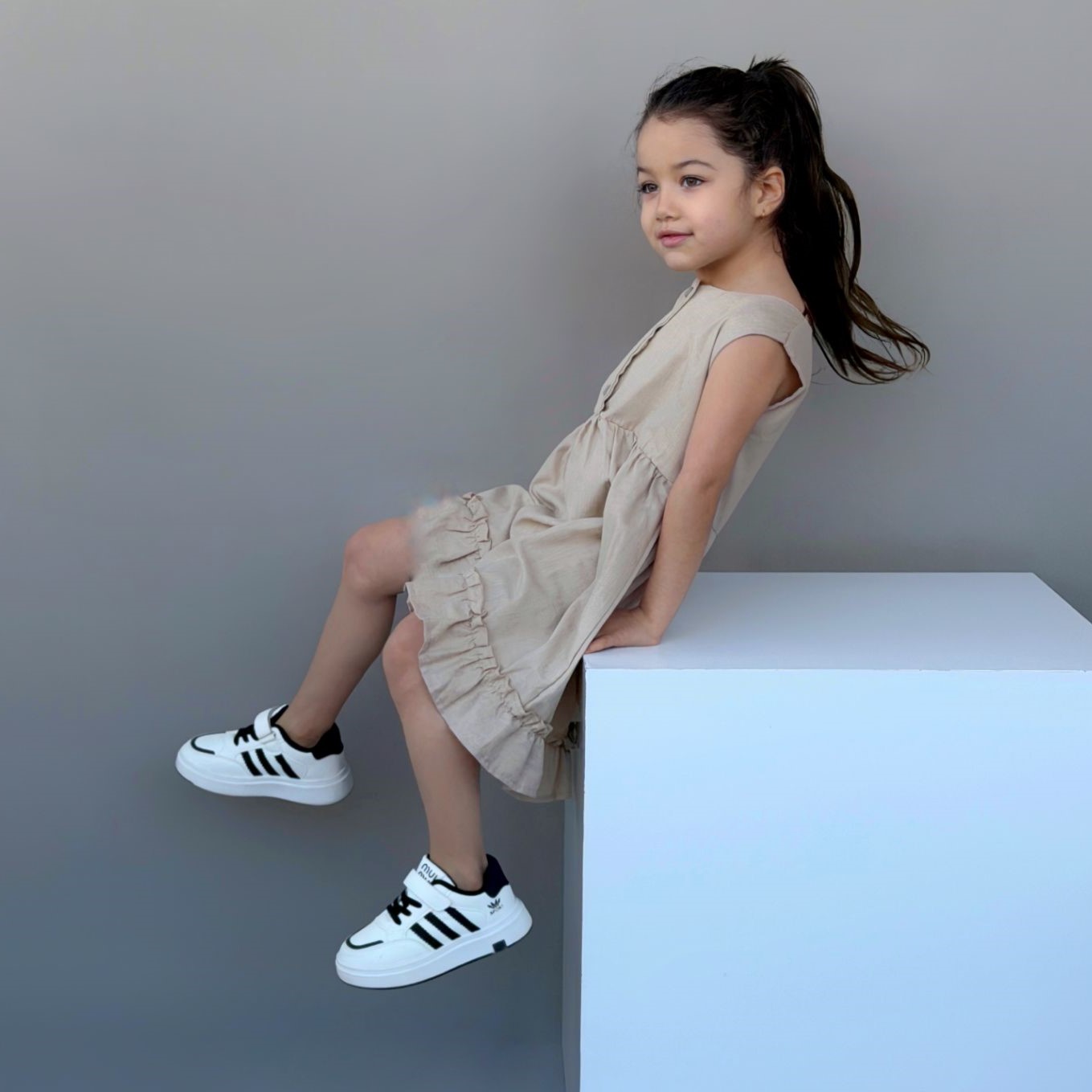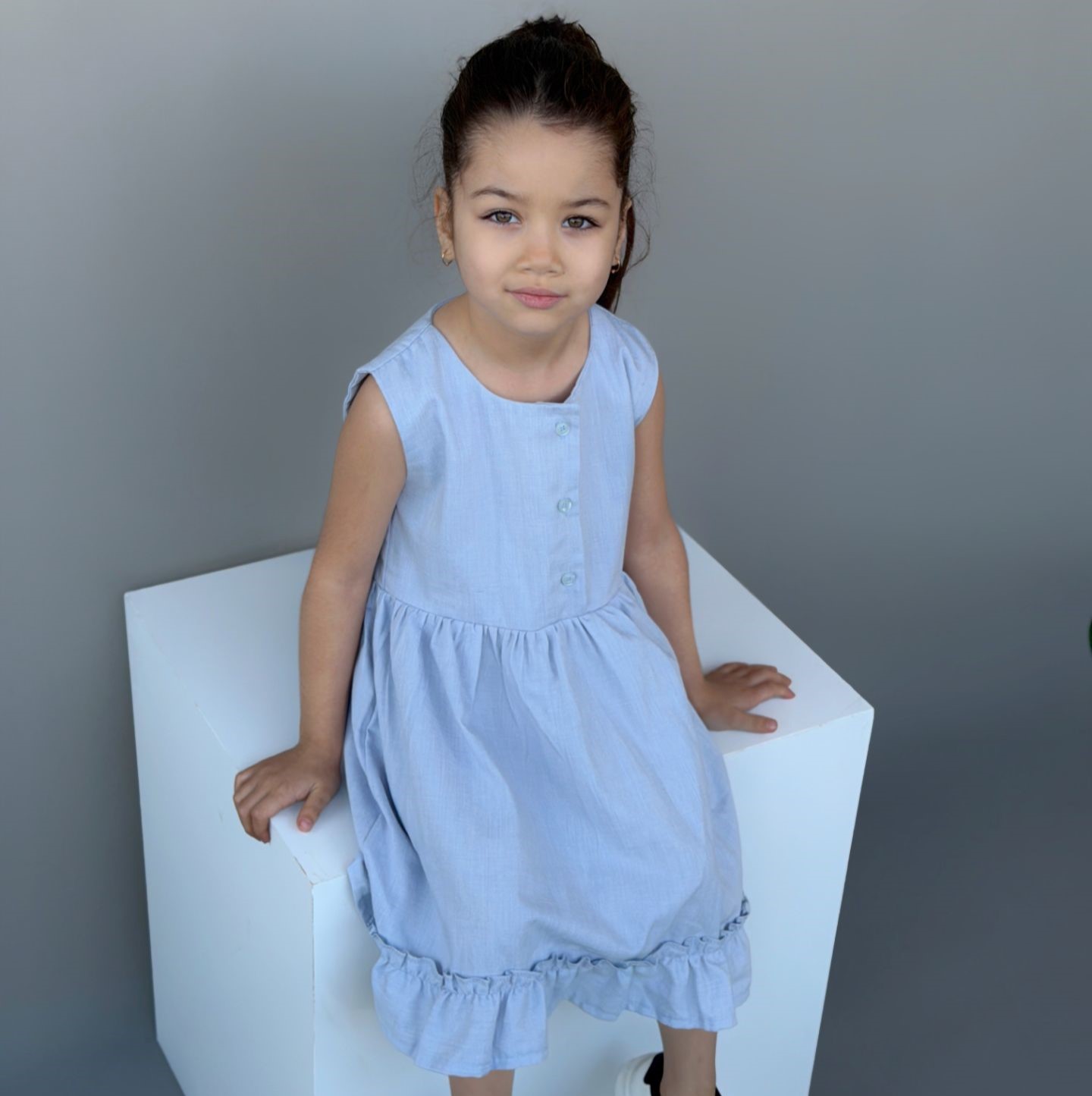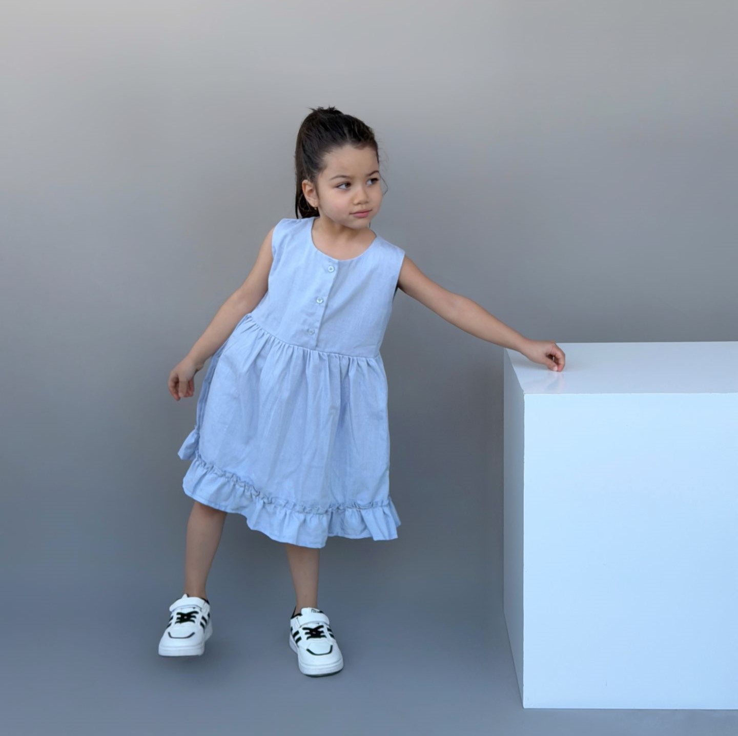 پیراهن دخترانه طرح فلورا جنس کتان نخ | سایز 3 الی 8 سال