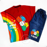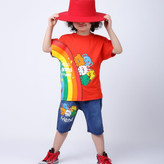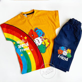 ست بچگانه تیشرت شلوارک جین طرح رنگین کمان جنس نخ پنبه