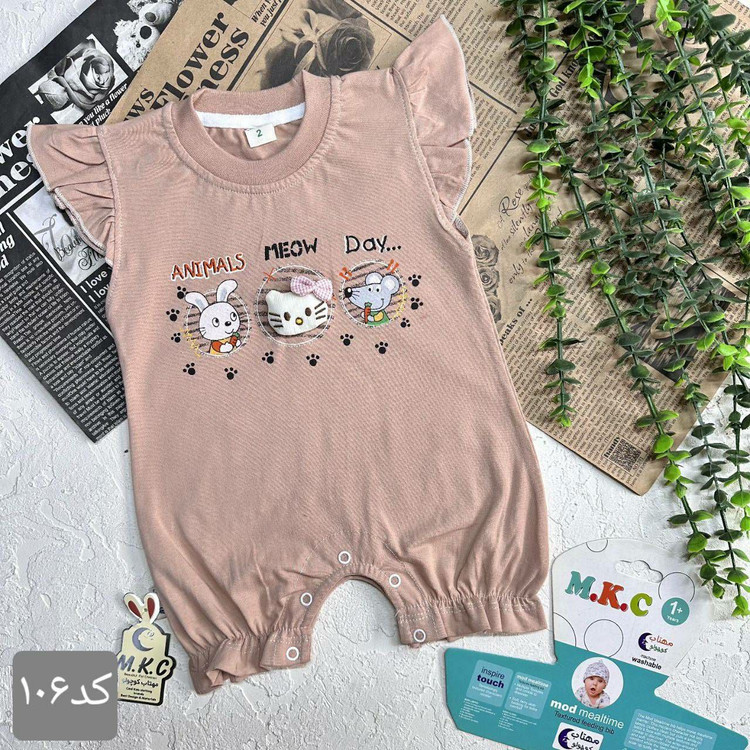 رامپر دخترانه چین دار جنس یک رو پنبه طرح کیتی برجسته ۳ ماه تا 2 سال
