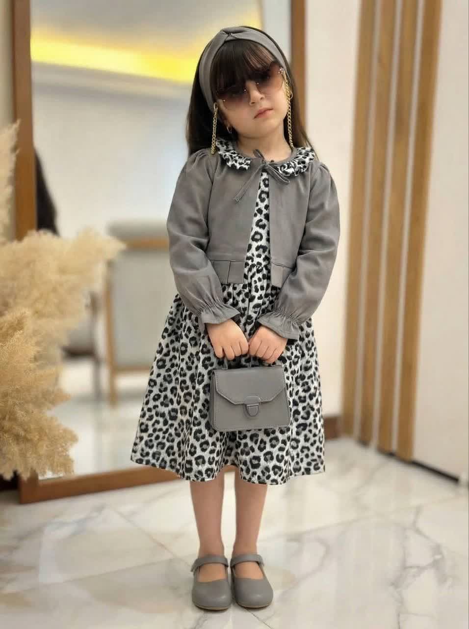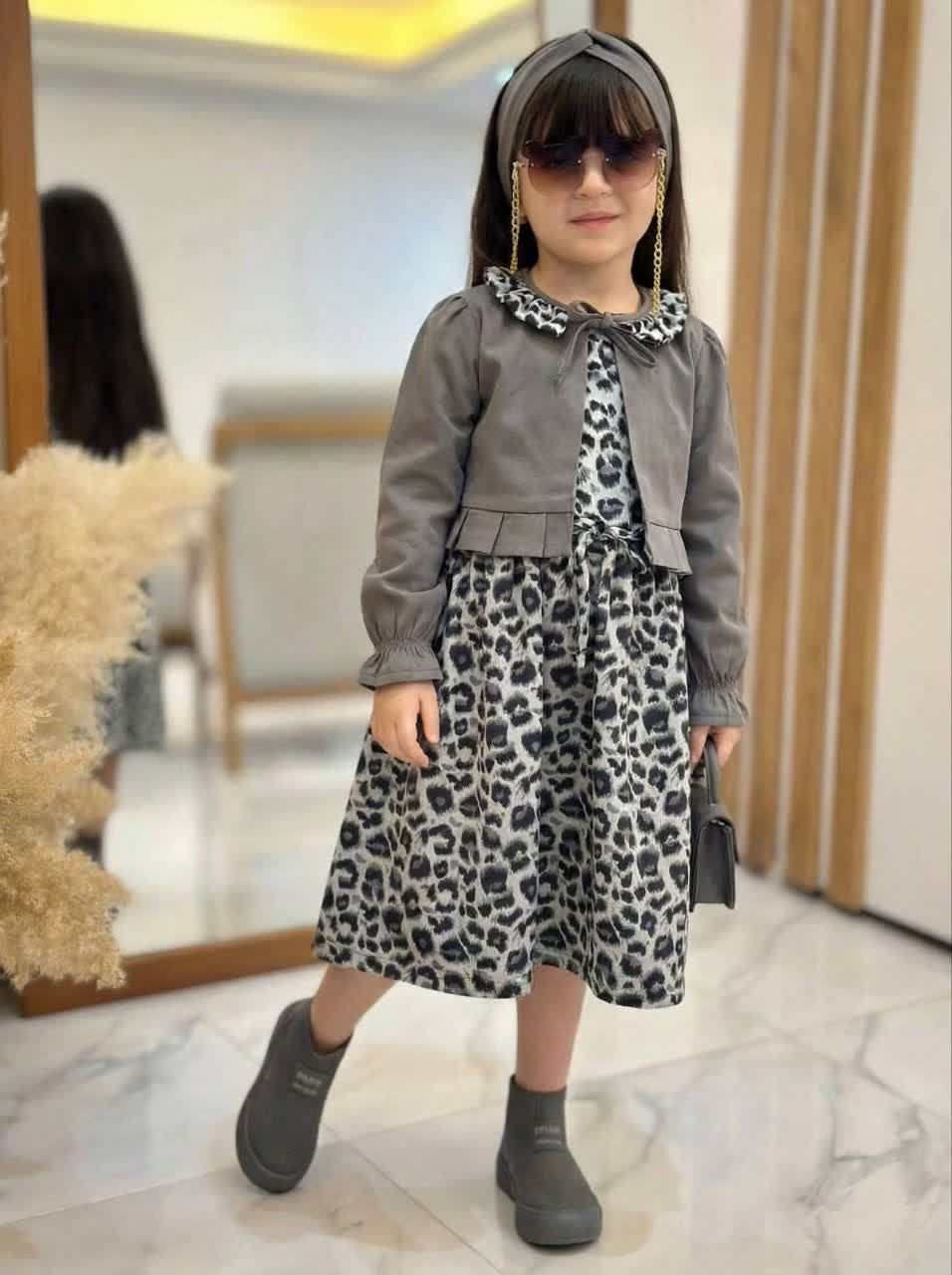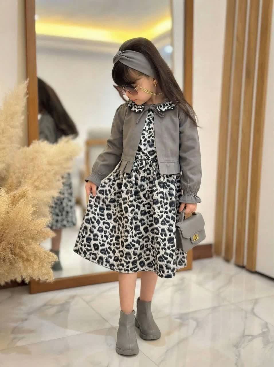 ست کت و سارافون دخترانه بهاره طرح پلنگی /سایز ۲ تا ۱۳ سال