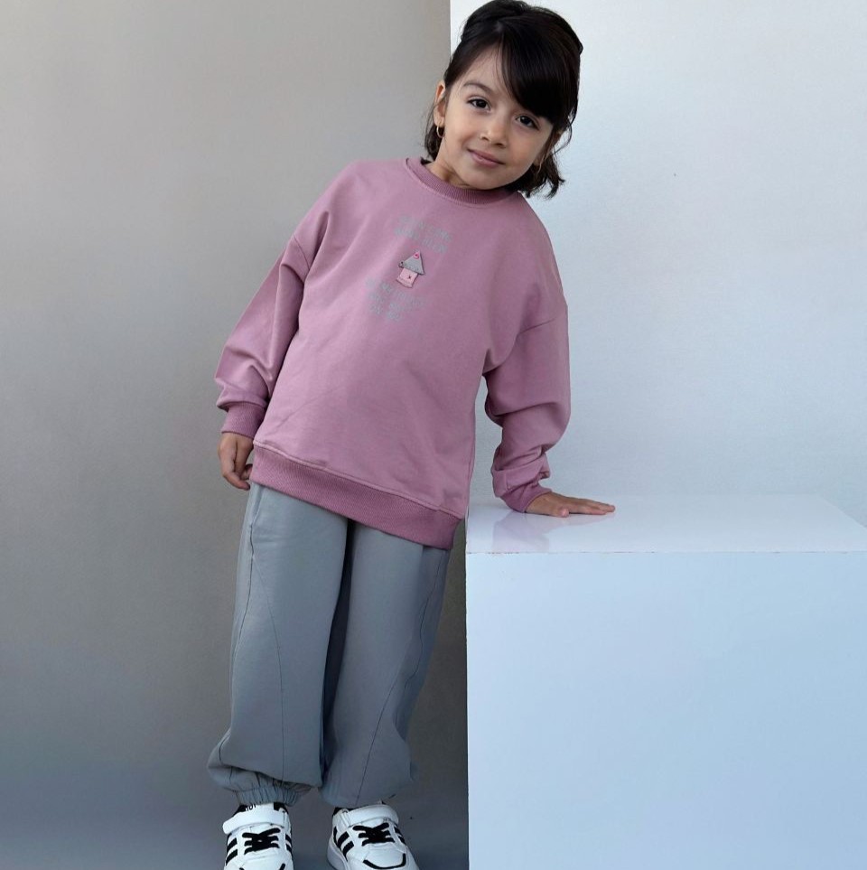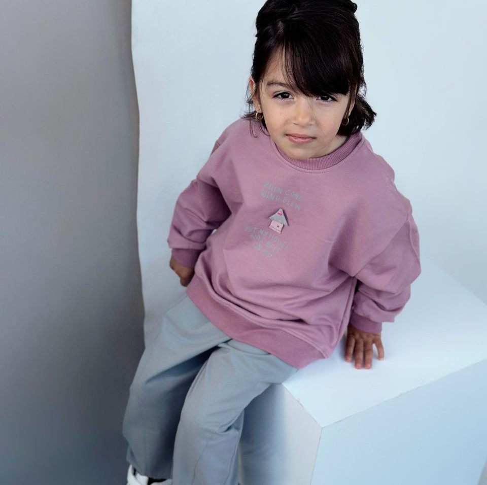 طراحی ساده اما خاص آن با نوشته انگلیسی و گلدوزی ظریف طرح خانه در قسمت جلو، جلوهای دوستداشتنی و متفاوت به لباس داده است. یقه گرد و فرم آزاد دورس باعث میشود کودک در طول روز آزادی حرکت کامل داشته باشد.