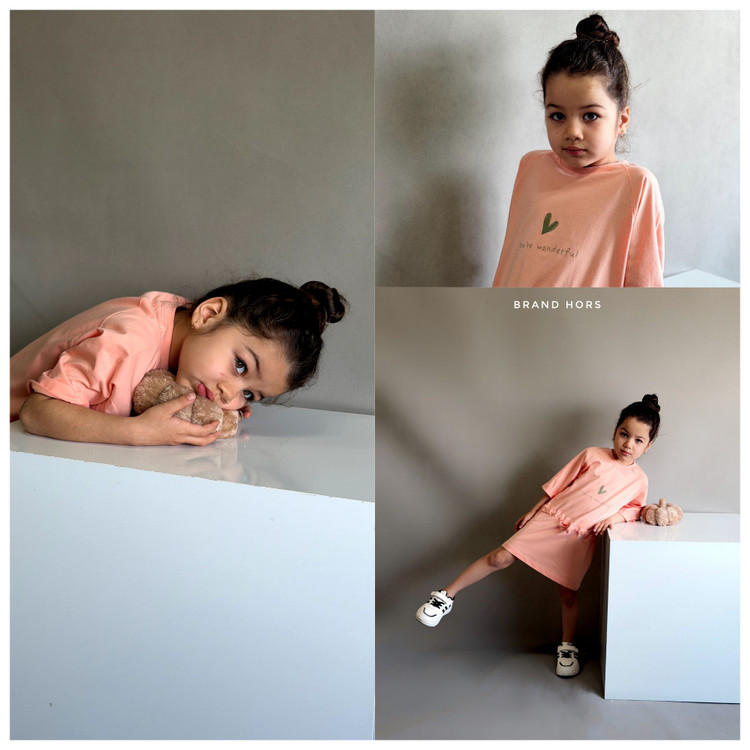 پارچه نرم و سبک این لباس، بافتی لطیف دارد و باعث میشود کودک در طول روز بدون احساس سنگینی یا خارش، آزادانه بازی و حرکت کند. قد لباس تا کمی بالای زانوست که باعث شده کودک به راحتی و آزادانه حرکت و بازی کند. رنگ صورتی ملایم آن نیز حس شیرینی و لطافت کودکانه را کاملتر میکند و بهراحتی با انواع کفش و اکسسوری ست میشود.