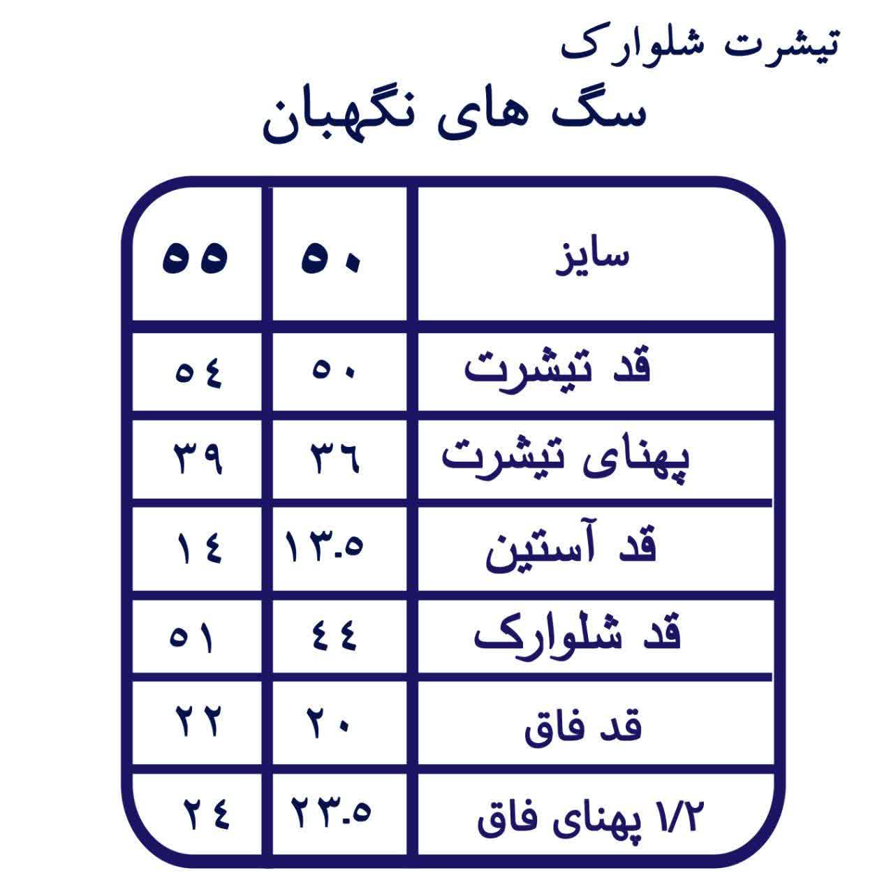 سایز ۵۵: قد لباس ۵۴ ـ عرض سینه ۳۹ ـ قد شلوارک ۵۱