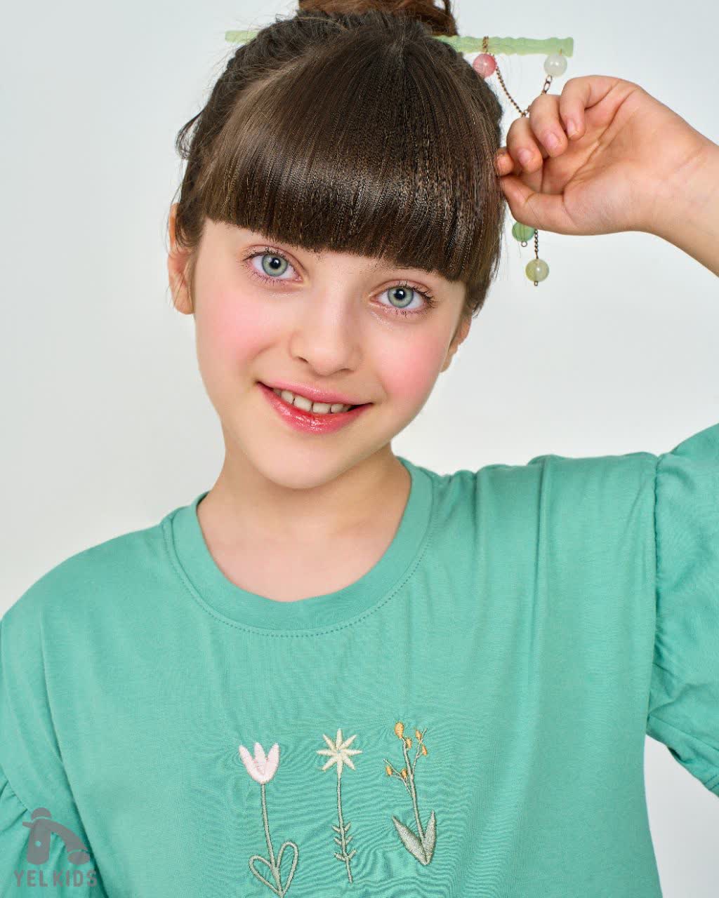 پیراهن دخترانه جنس رنگ سبز صدفی و کالباسی | سایز ۵ تا ۱۰ سال