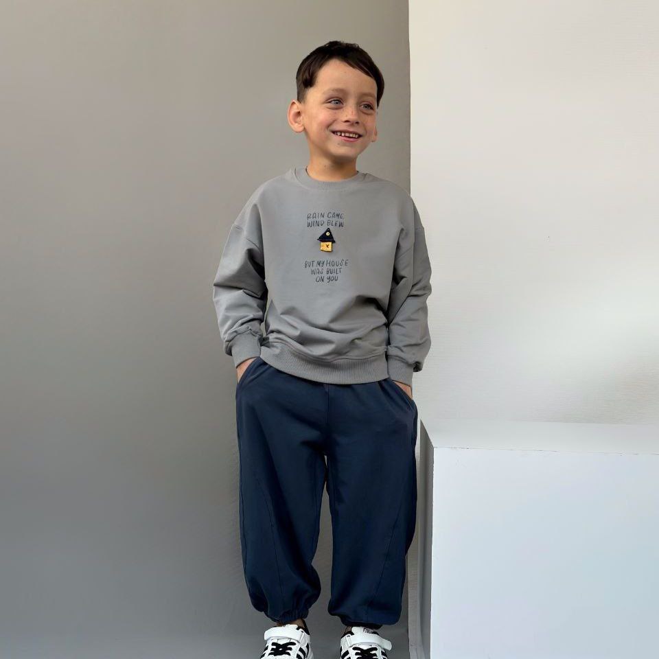 بلوز تک دورس بچگانه طرح خانه رنگ طوسی جنس دورس لاکرا | سایز 3 الی 10 سال