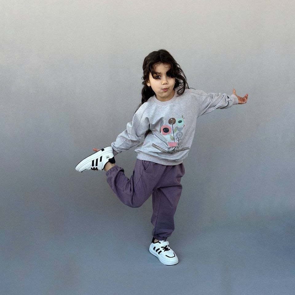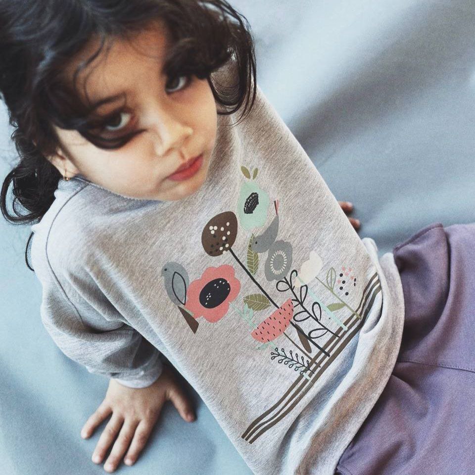 بلوز تک دورس بچگانه طرح گل جنس دورس لاکرا رنگ طوسی| سایز 1 الی 8 سال